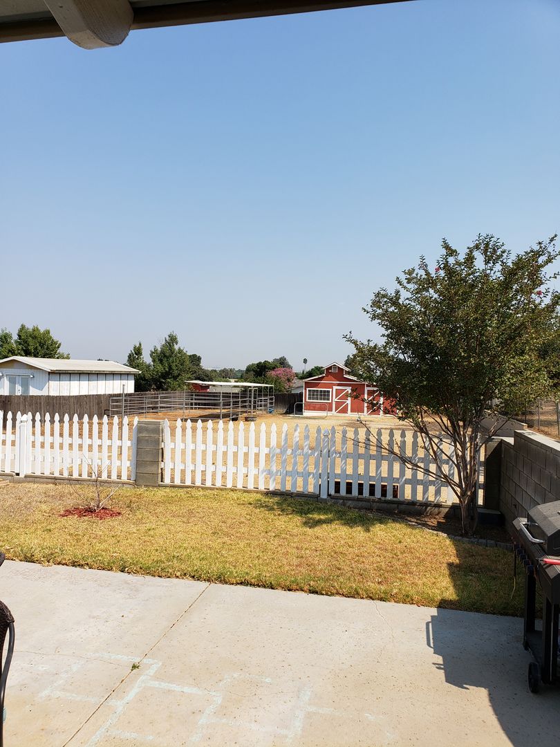 This beautiful 3 bedroom, 2 bath ranch house with a barn and coral is looking for its next family and horse to call it HOME. Located in a great neighborhood. you will love driving into your 2 car garage. This home also sits on almost a 1/2 are large lot so there is absolutely plenty of room for play. If you own a horse, bring it. Property is zoned for horses as well. You're not into horses, what about RVs? We have parking for that as well. Kitchen and living area have a full view of the backyard. Kitchen also opens up to the family room so you're never cooking alone. Also, $175.00 a month will be added for water, sewer and electric meter.